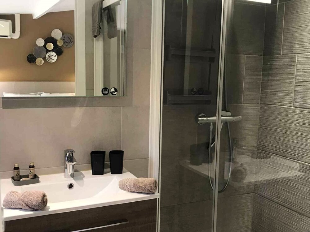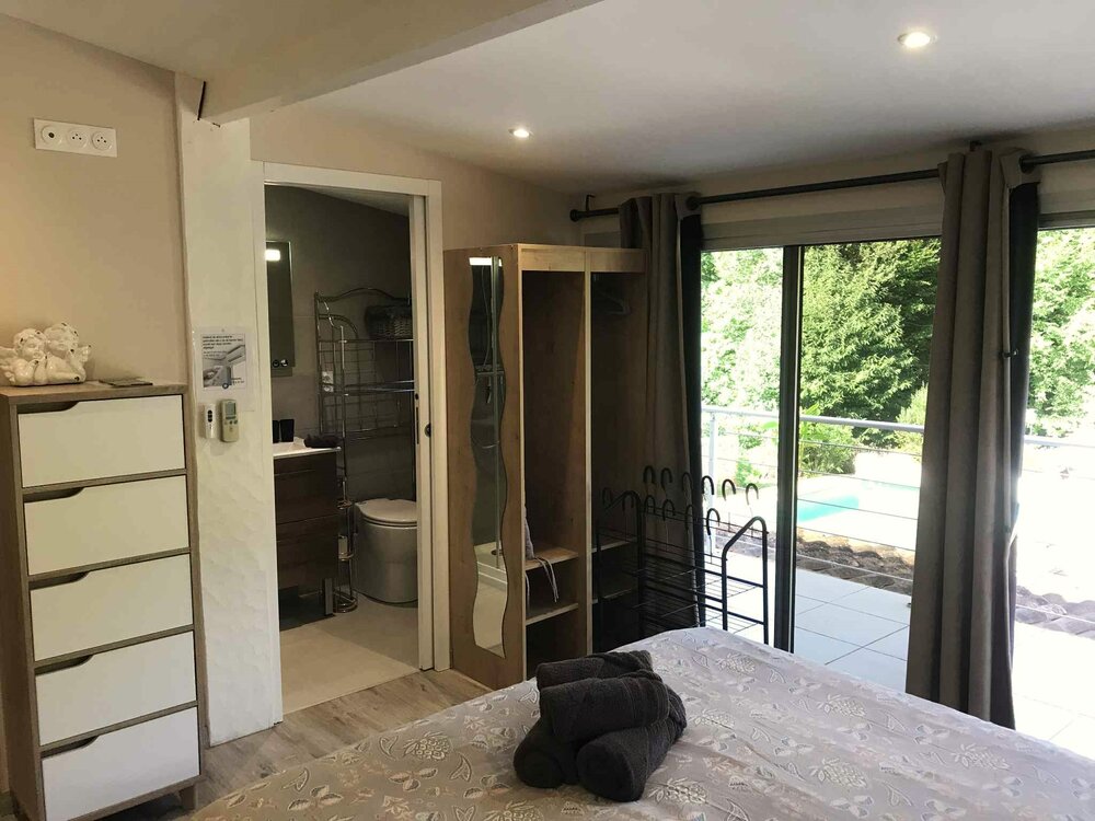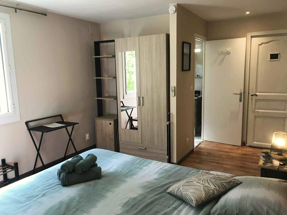 Accommodatie voor 3 tot 4 personen is mogelijk in twee kamers, zoals PERLE 2 en 2b, die dan van elkaar geïsoleerd zijn.